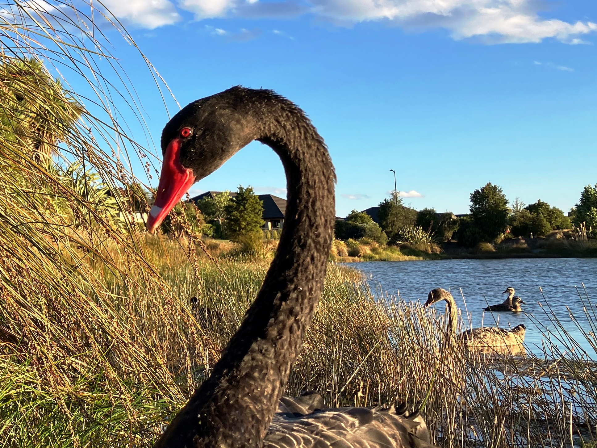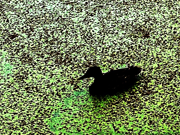 swan event and a mallard in the pond weed (false color) on an
