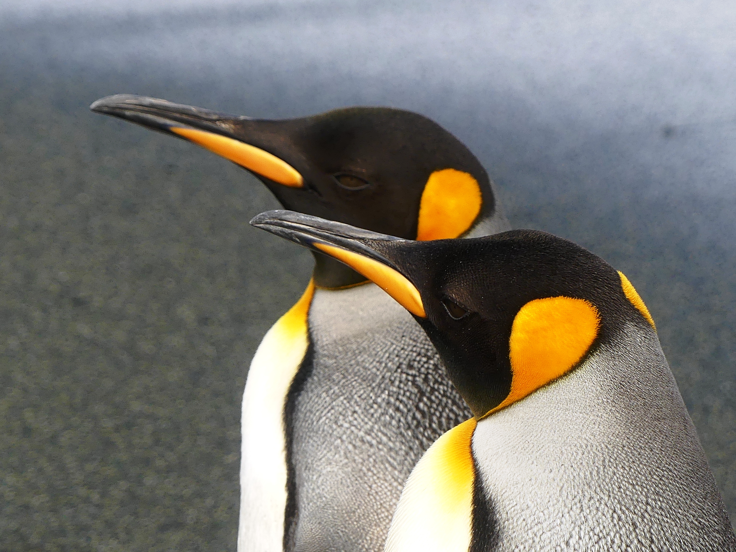 Macquarie: King penguins, Royal penguin in the surf