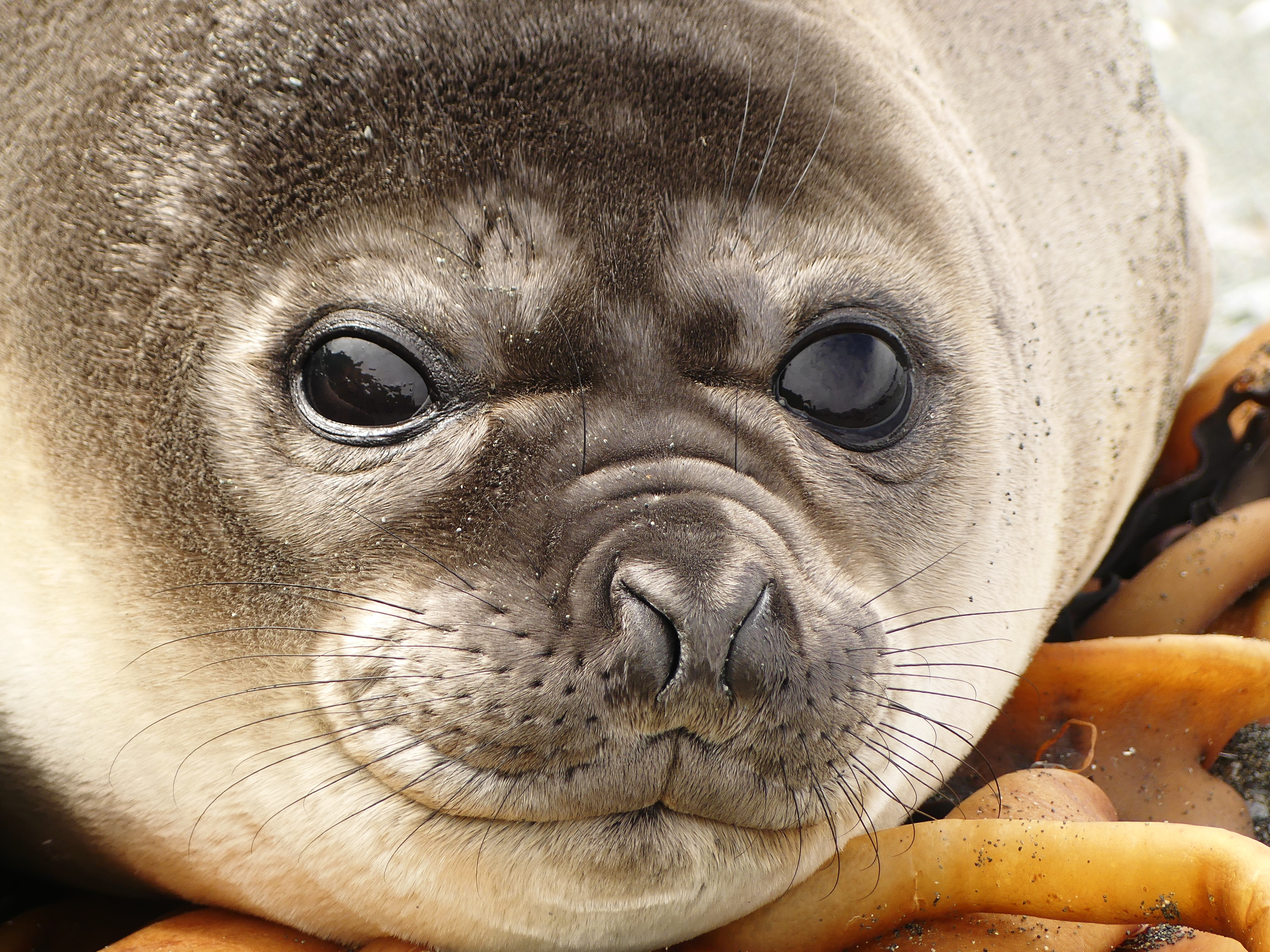 seal weaner/weiner face and flipper; King colony, Royal crest;