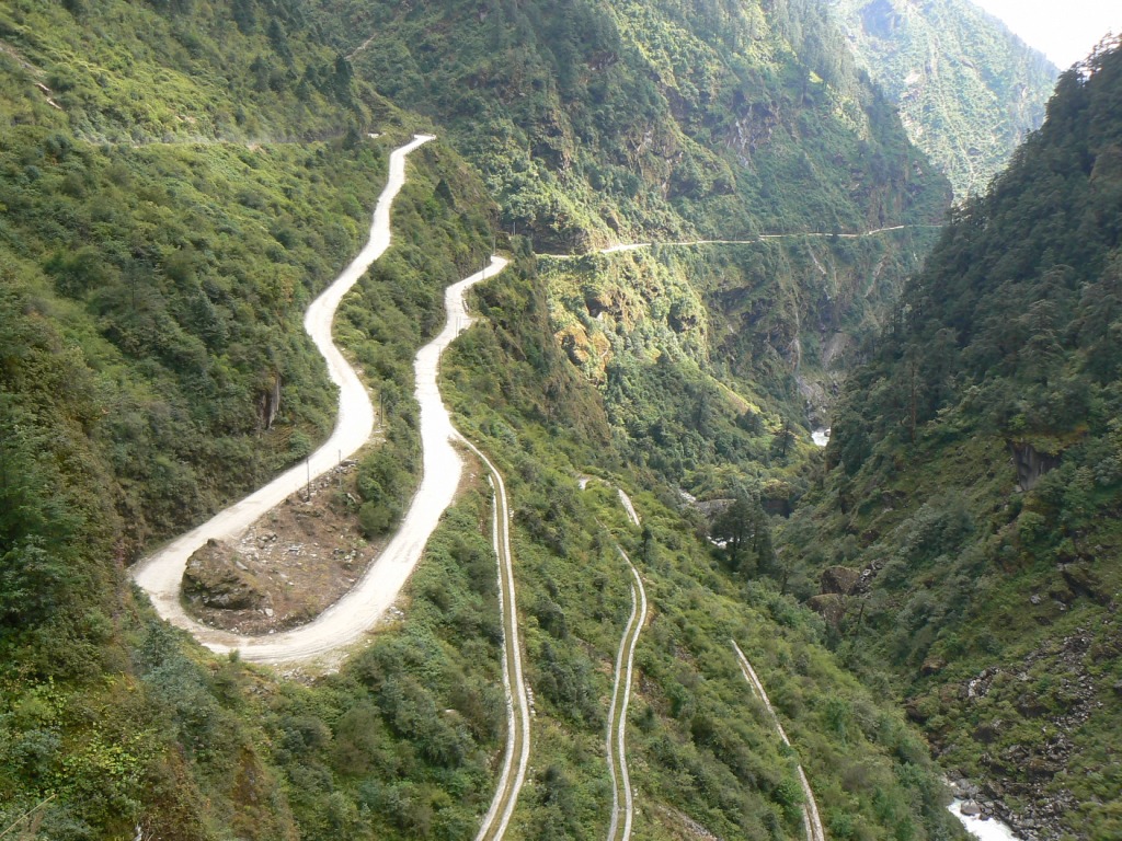 (Tong-la with an excellent panorama of the Himalaya), and into a river
