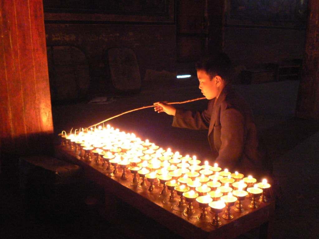 blossoms, the imitation butter lamps and yak skull lamps, Om mani padme